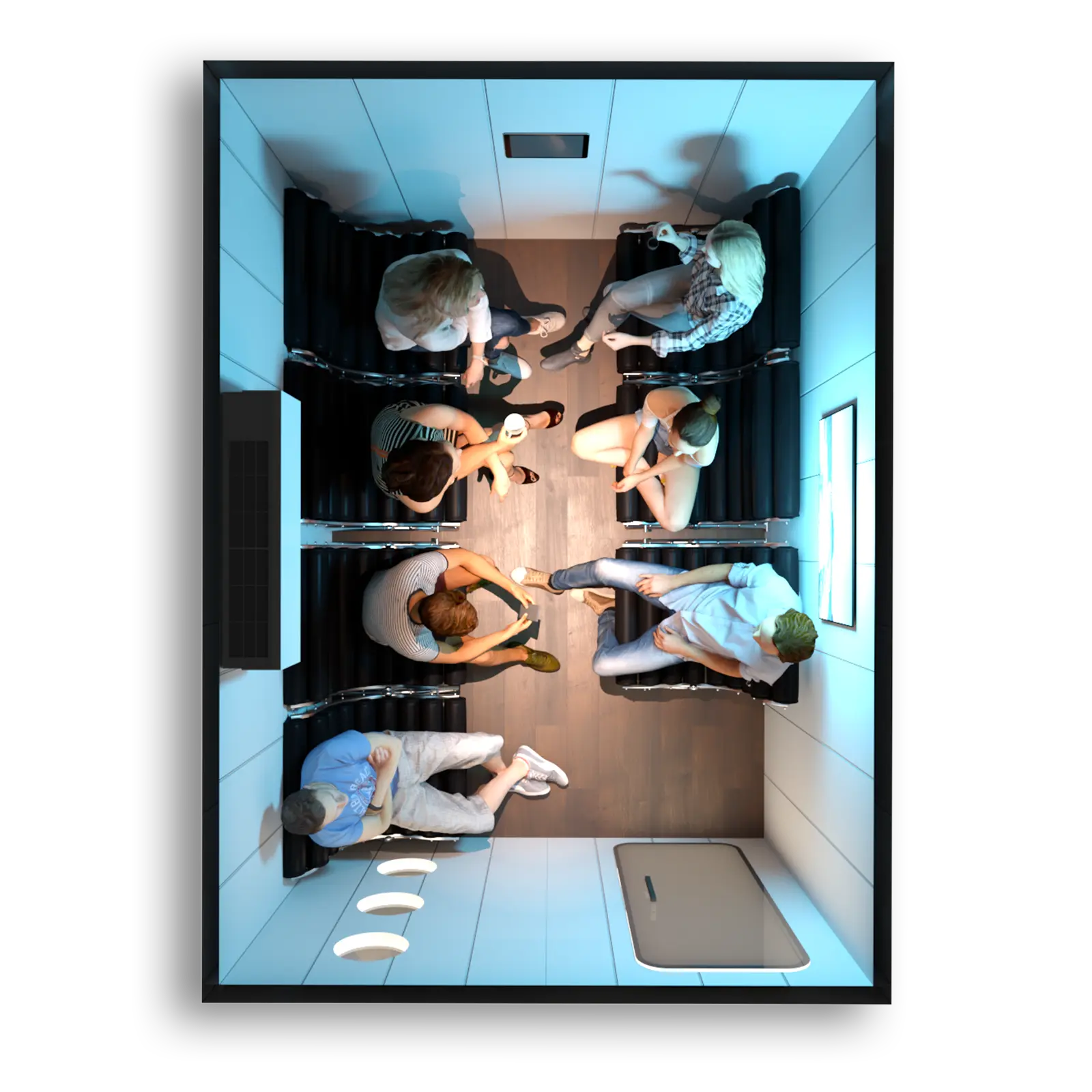Personalizacja komory nie dotyczy jedynie wyglądu, ale głównie ma na celu maksymalizację Twojego komfortu. Dlatego dostosujemy komorę do układu pomieszczenia, w którym będziesz jej używać. Do Ciebie należy wybór, jeśli chodzi o ilość oraz lokalizację okienek w komorze.