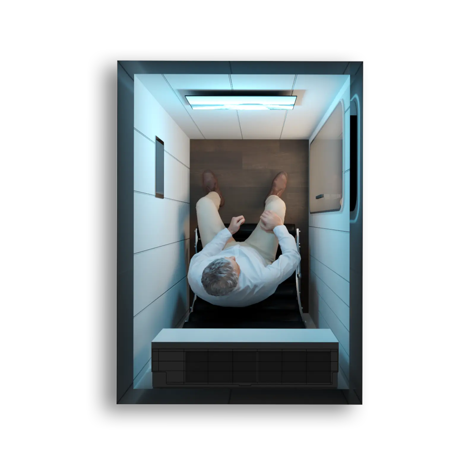Ostateczny wygląd komory, a także jej rozmiar może się nieznacznie różnić w zależności od wybranego poziomu ciśnienia, co wynika z uwarunkowań technologicznych. Wizualizacje mają charakter poglądowy. Sugerowana liczba osób, które mogą korzystać z komory, zależy od jej wewnętrznej konfiguracji.