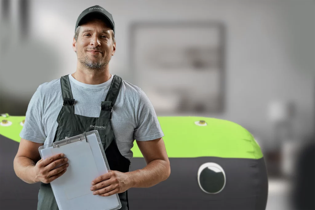W Oxymatic® zapewniamy kompleksowy serwis komór hiperbarycznych, gwarantując niezawodność i bezpieczeństwo terapii. Nasz doświadczony zespół serwisowy oferuje dwuletnią gwarancję, dodatkowe plany ochronne, pełne wsparcie techniczne oraz dostęp do urządzeń zastępczych, aby zapewnić ciągłość leczenia. Wybierając Oxymatic®, wybierasz pewność działania i maksymalne wykorzystanie potencjału terapii hiperbarycznej.